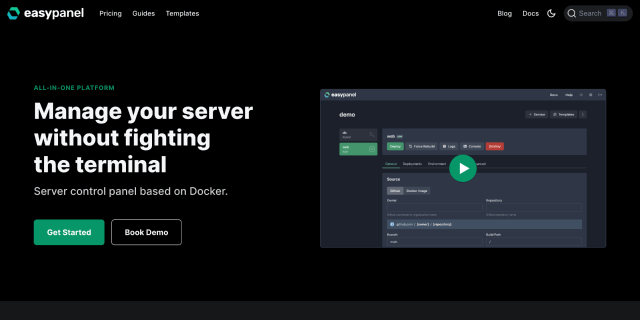 Server control panel based on Docker